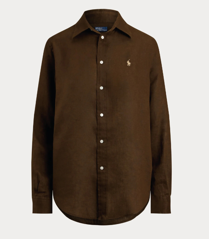Realizzata in lino leggero, questa camicia dal taglio dritto è impreziosita da bottoni in madreperla e dal nostro esclusivo pony meticolosamente ricamato.