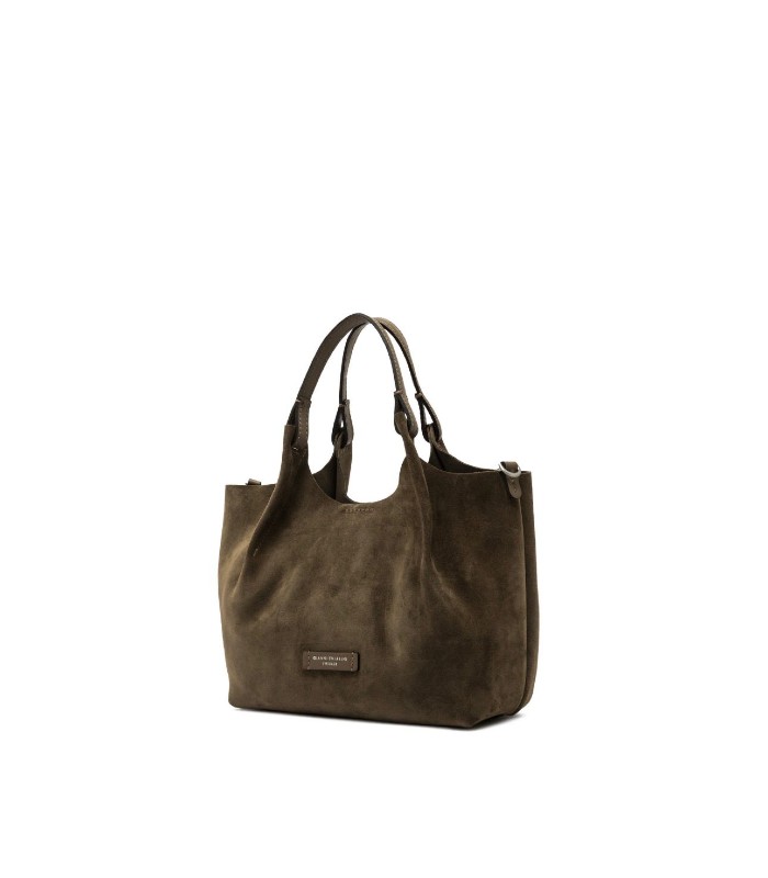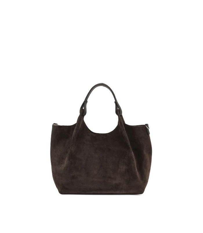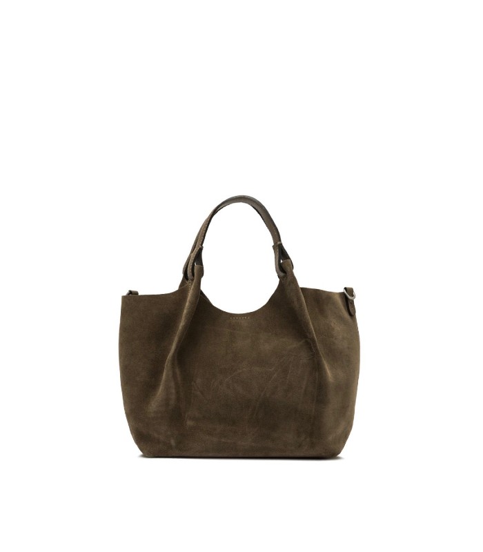 L’icona del brand DUA si distingue per un design semplice, ma contemporaneo. Realizzata in morbida pelle scamosciata, presenta un monoscomparto sfoderato con pochette interna, profili superiori in pelle martellata e doppi manici in tono. Pratica ed essenziale, è la borsa ideale per completare ogni donna. Può essere portata a mano o crossbody grazie alla tracolla removibile di cui è dotata. Dimensioni: 24x27x12 cm.