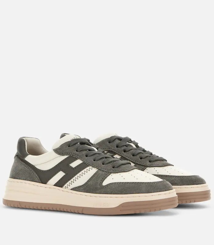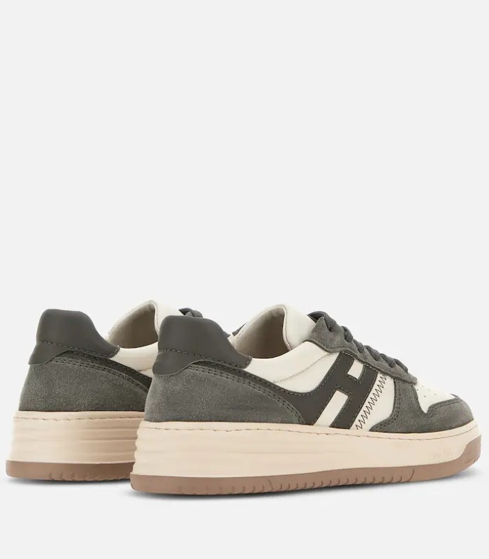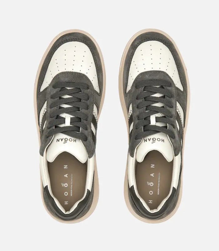 Le sneakers Hogan H630 combinano linee ispirate al mondo del basket e stilemi tipici del brand. La tomaia in pelle scamosciata con inserti in nappa è caratterizzata da un’H allungata che gira intorno al tallone. La suola è in EVA extralight, con logo HGN86 in rilievo sul lato e righe sfumate che reinterpretano le iconiche scanalature Rebel. Must-have del guardaroba contemporaneo, questo dinamico modello è completato da una soletta in memory foam che assicura morbidezza e ammortizzazione.