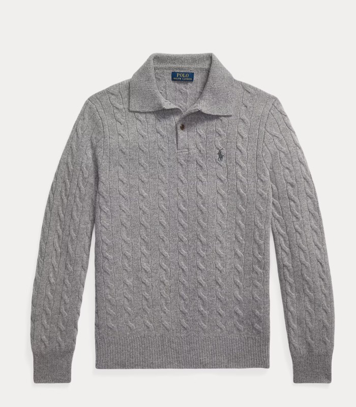 Polo ralph lauren maglia polo in lana e cashmere a trecce