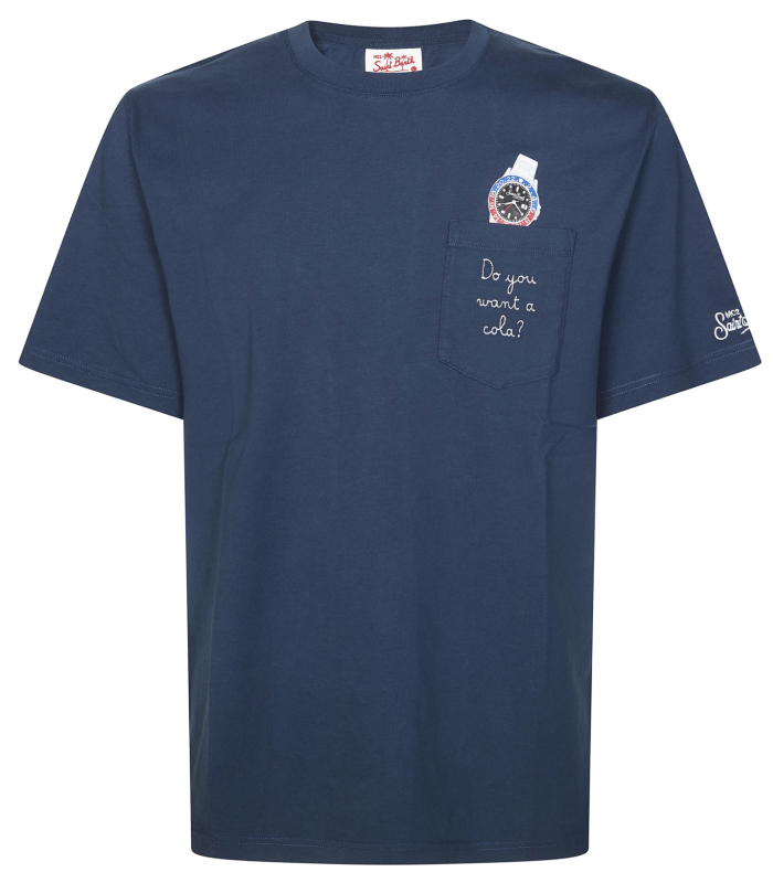 La t-shirt Austin è realizzata in puro cotone, progettata per offrire comfort e una sensazione naturale sulla pelle. Il design blu tinta unita valorizza la costruzione essenziale del capo. Il modello presenta un taschino sul petto con ricamo a contrasto Do You Want A Cola? ed è completato da un’illustrazione di un orologio. Il capo è rifinito dal ricamo St. Barth. Il modello presenta scollo a girocollo, maniche corte e linea dritta con vestibilità regolare.
